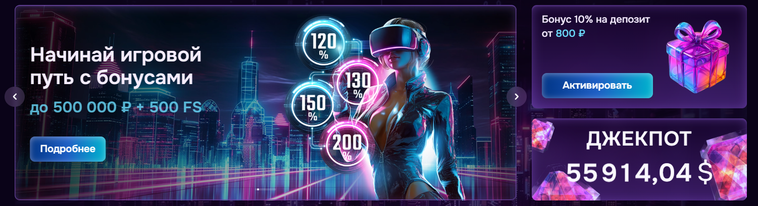 Новые пользователи получают бонус 250% к первому депозиту и до 150 фриспинов на популярные слоты. Условия активации доступны в разделе «Промо».